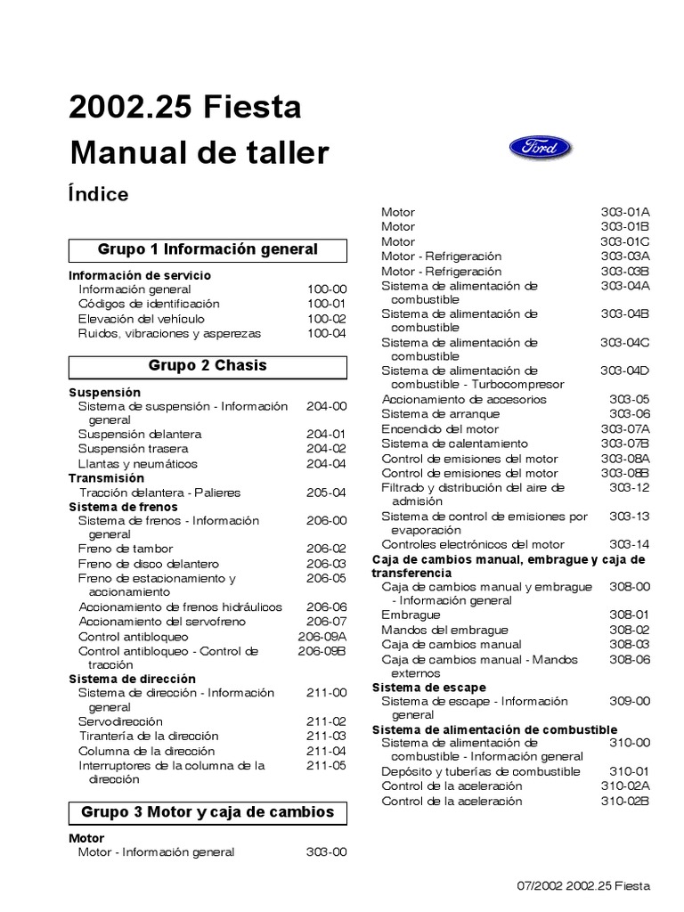 Manual Ford Fiesta Motor 1 6